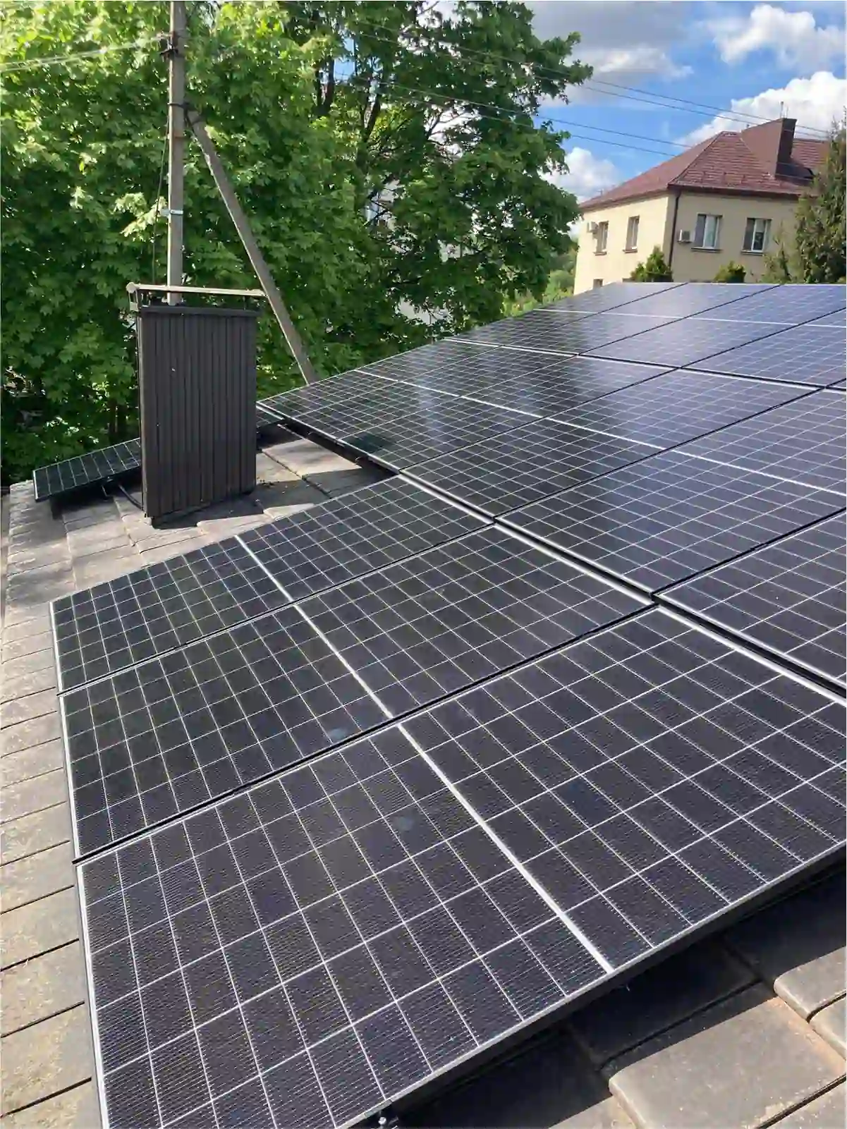 Prieš įrengimą buvo parengtas detalus projektas su vizualizacija. „ASTRONERGY CHSM60N 480 W“ juodo rėmo moduliai pasižymi gera kaina ir aukšta kokybe. Jie idealiai tinka montuoti tiek ant šlaitinių, tiek ant plokščių stogų, o padidintas atsparumas oro sąlygoms užtikrina patikimą veikimą ilgus metus.