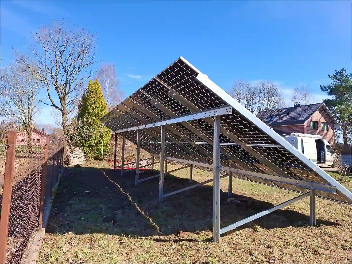 Prieš įrengimą buvo parengtas projektas, kuriame sumodeliuota elektrinės išdėstymo schema sklype ir apskaičiuota numatoma finansinė nauda. Dvigubo stiklo „TrinaSolar“ saulės moduliai su pilku rėmu pasižymi aukšta kokybe ir ilgaamžiškumu. Jie atsparūs permainingoms oro sąlygoms – net kruša jų nepaveiks.
