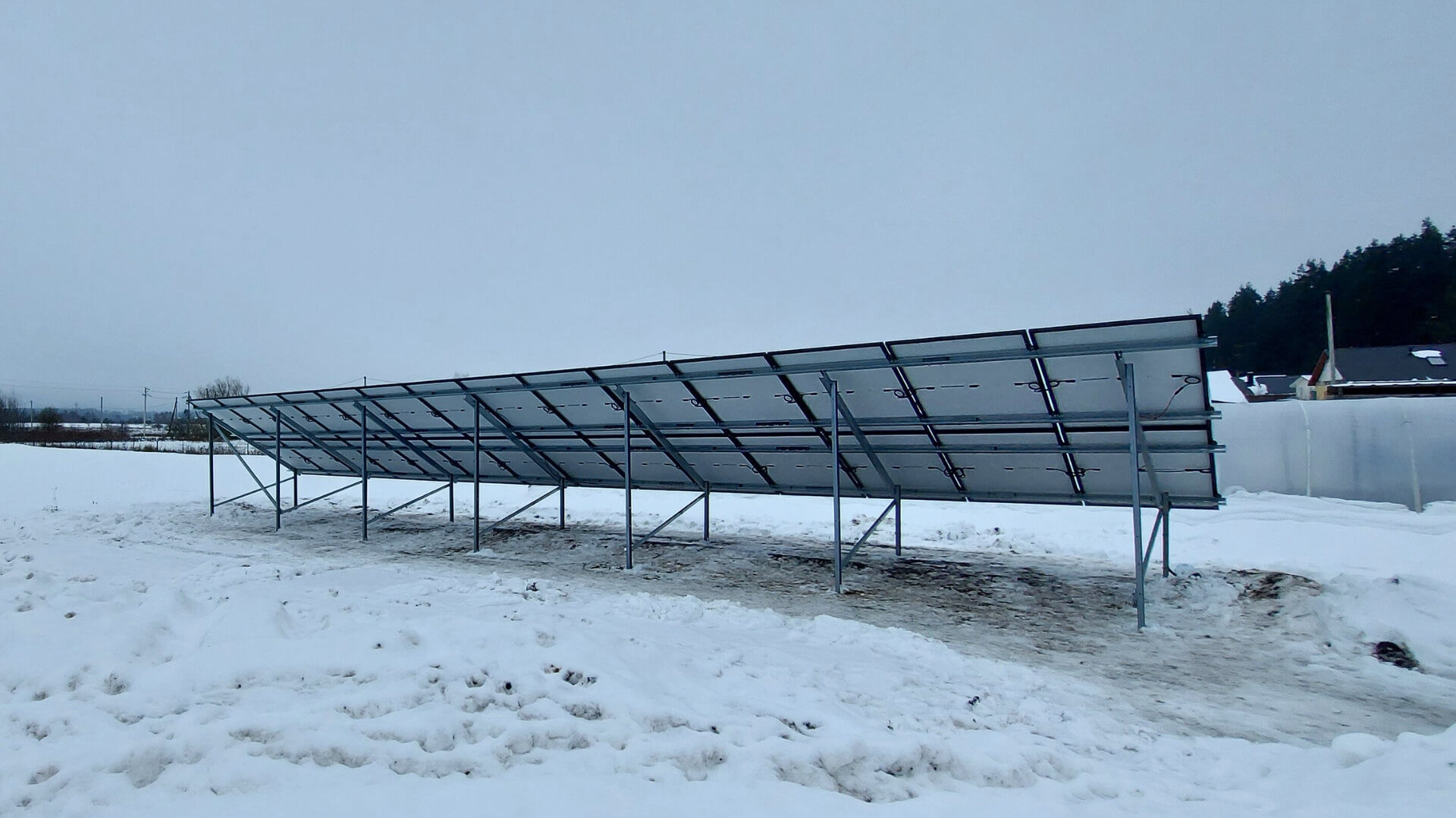 Sumontuota antžeminė saulės elektrinė Vilniaus rajone, jėgainės galia 12 kW. Saulės elektinės įrengimui buvo panaudota: JINKO JKM430N-54HL4R-B VISIŠKAI JUODI saulės moduliai (28 vnt.) su 25 metų produkto garantija ir net 30 metų linijine produkto efektyvumo garantija, SolaX-X3-Hybrid-12.0-D-G4 trifazis, hibridinis inverteris su integruota Wifi stebėsena.