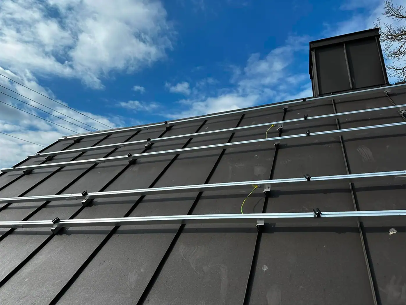 • Konstrukcijos bei kitos būtinos medžiagos montavimui ant valcuotos skardos stogo.